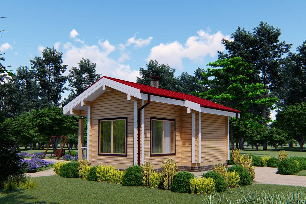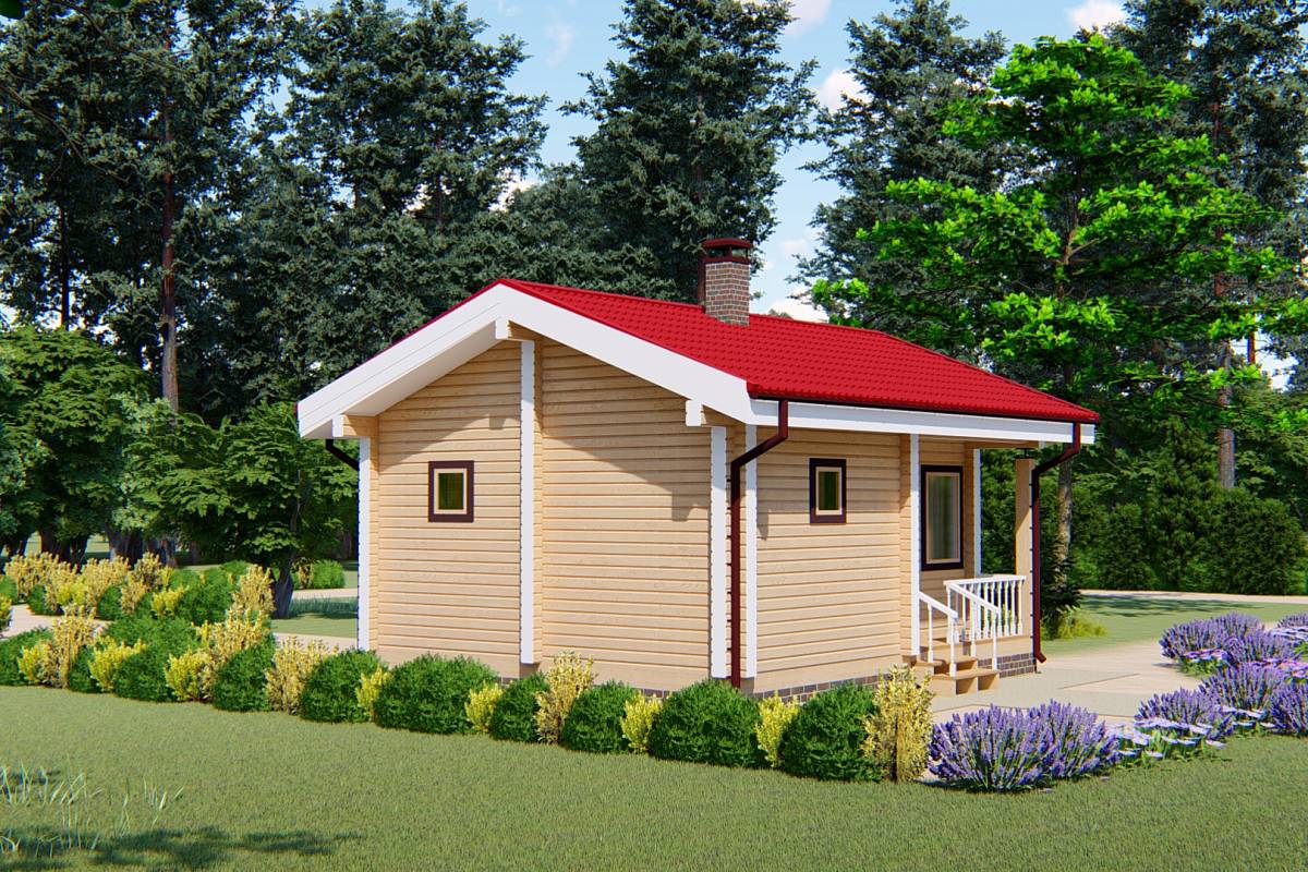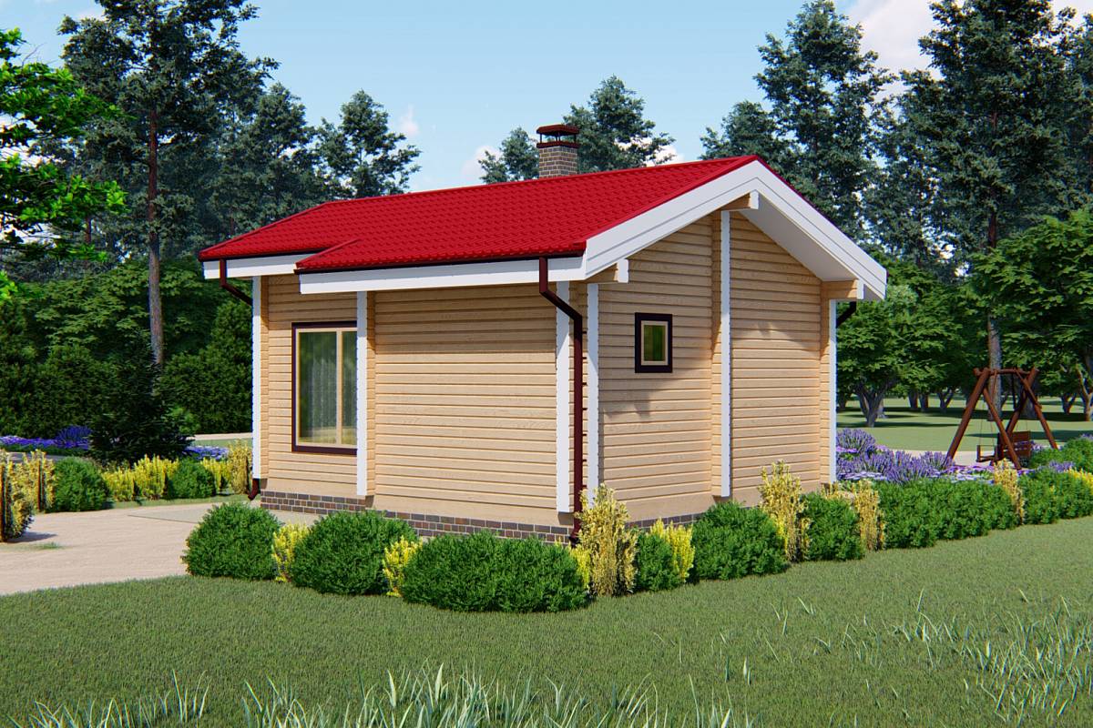 Проект бани с общей площадью 30 м.кв., выполнен из профилированного бруса с габаритами 5,6х7,2 м. У бани двускатная кровля и широкими свесами, что предотвращает попадание косого дождя на деревянные стены.