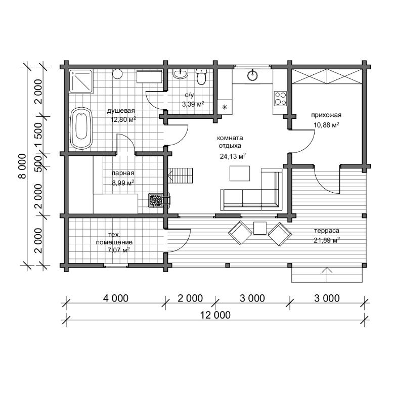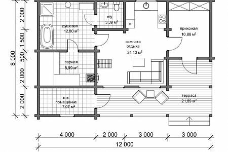 Проект бани из бруса "Таганай"