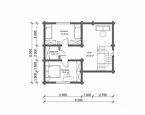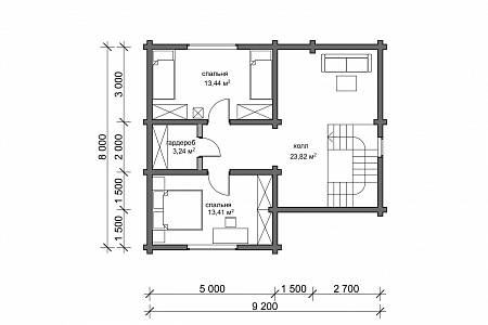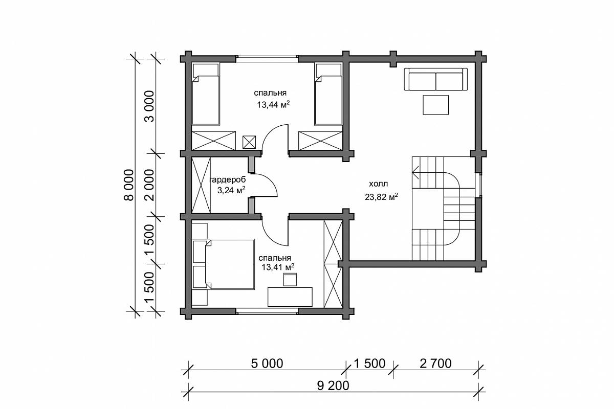 На втором этаже две отдельные спальни, небольшая кладовая и антресоль для размещения диванной зоны или дополнительных спальных мест.