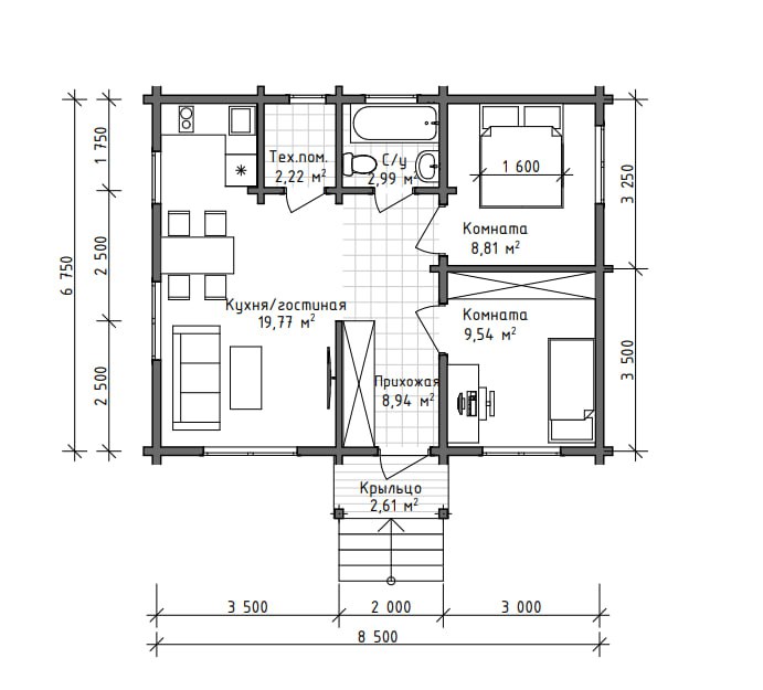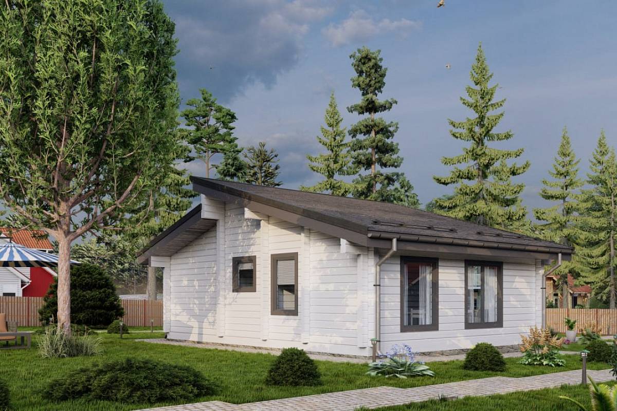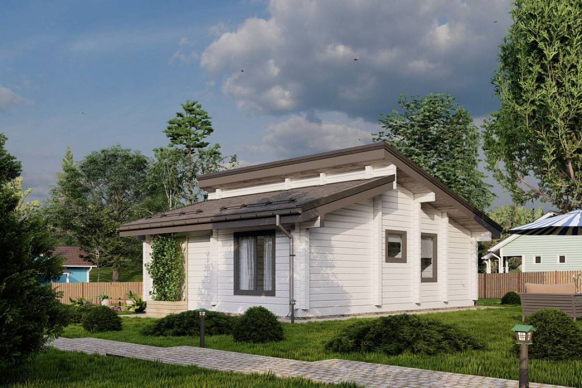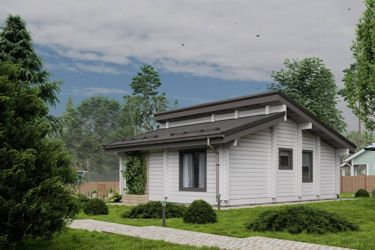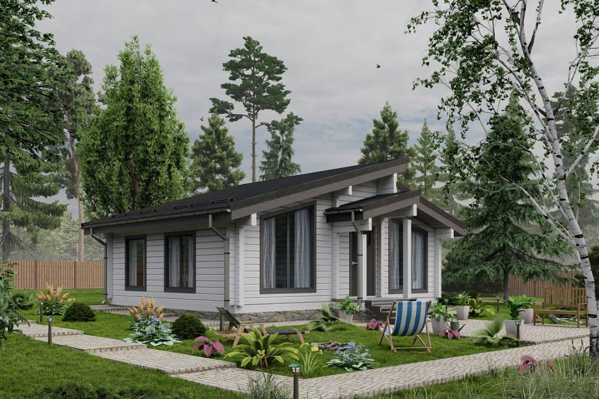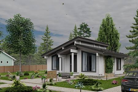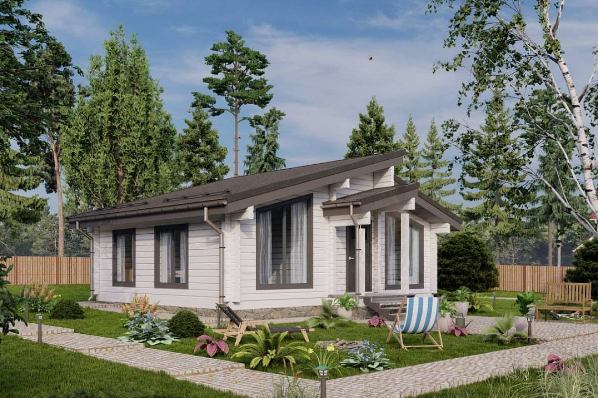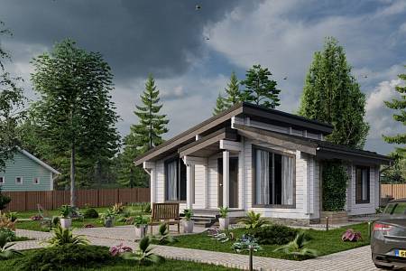 Компактный дом, который прекрасно послужит как дача в современном стиле или объект для аренды. Архитектурное решение основано на создании светлого и стильного пространства, в котором есть всё необходимое для комфортного загородного отдыха. Небольшая площадь спален достаточна для размещения раскладного дивана и рабочего места или двуспальной кровати. Наружные стены – премиальный клееный брус 160*185 мм. Преимущества: Компактные габариты Стильный экстерьер Большие окна