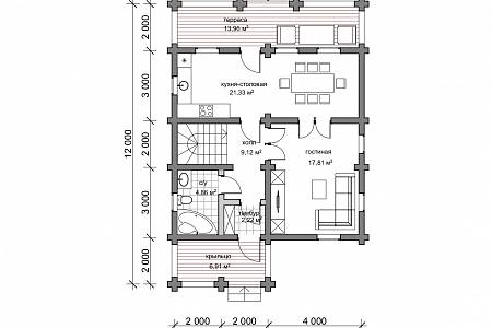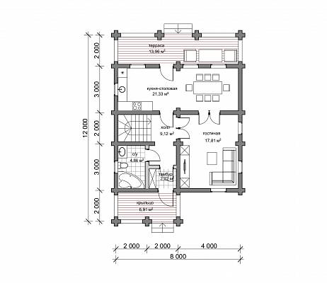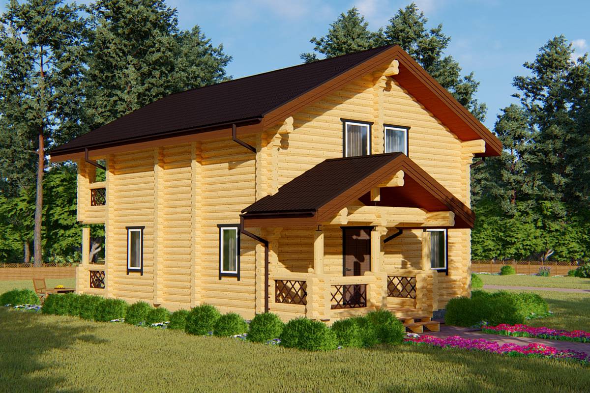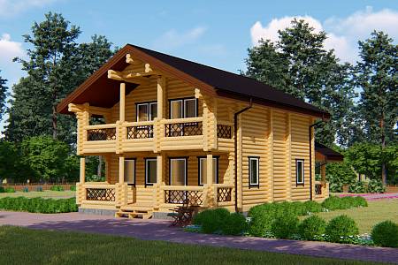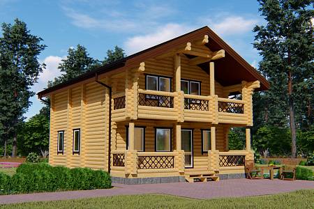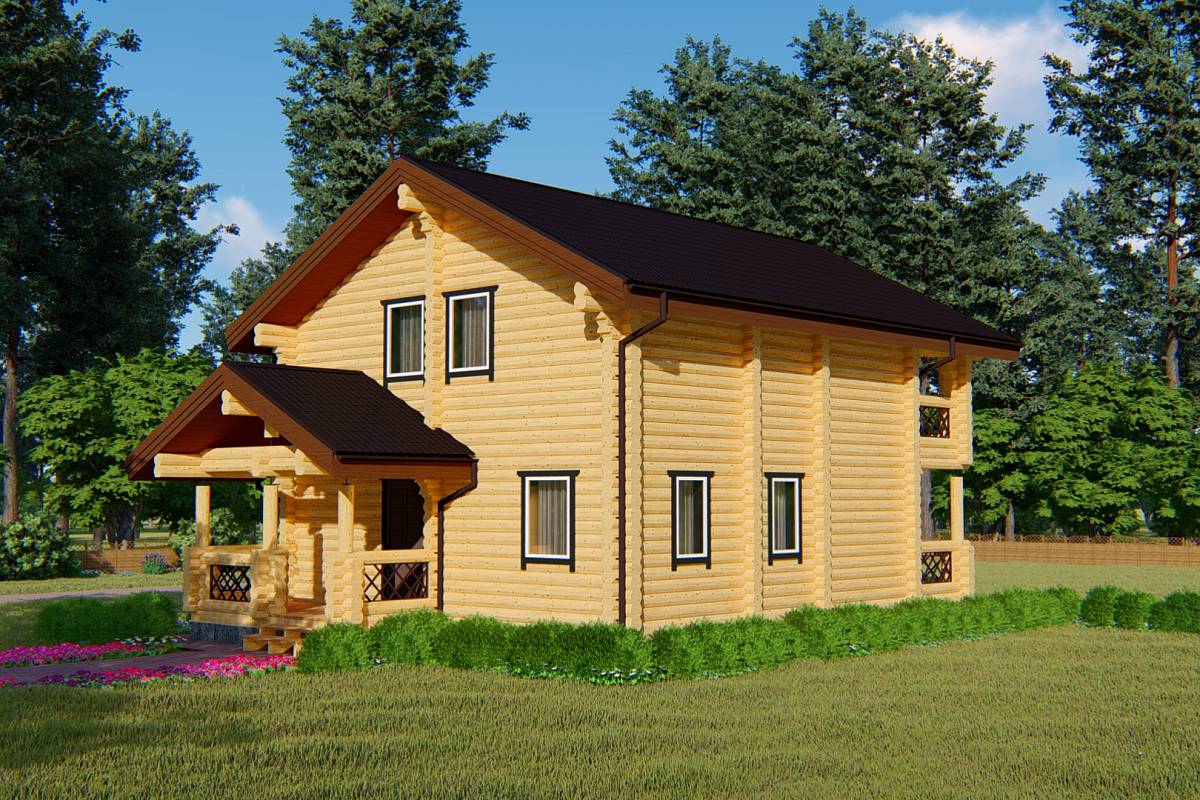 Компактный проект жилого дома, выполнен из оцилиндрованного бревна, подойдет как для постоянного проживания, так и как дачный вариант.