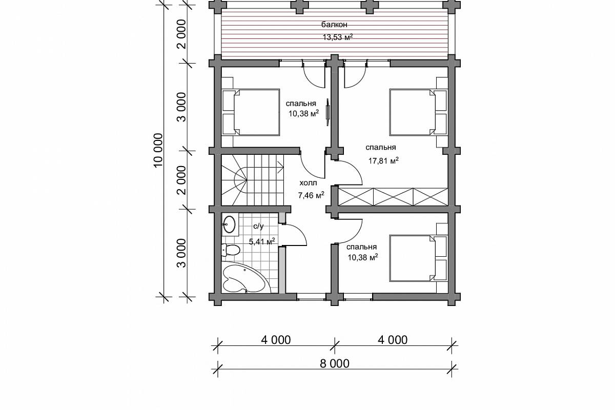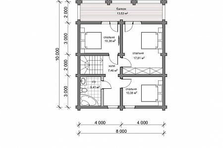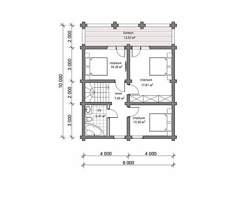 Все жилые комнаты размещены на втором мансардном этаже. Здесь все пространство отдано под четыре спальни, есть выход на балкон.