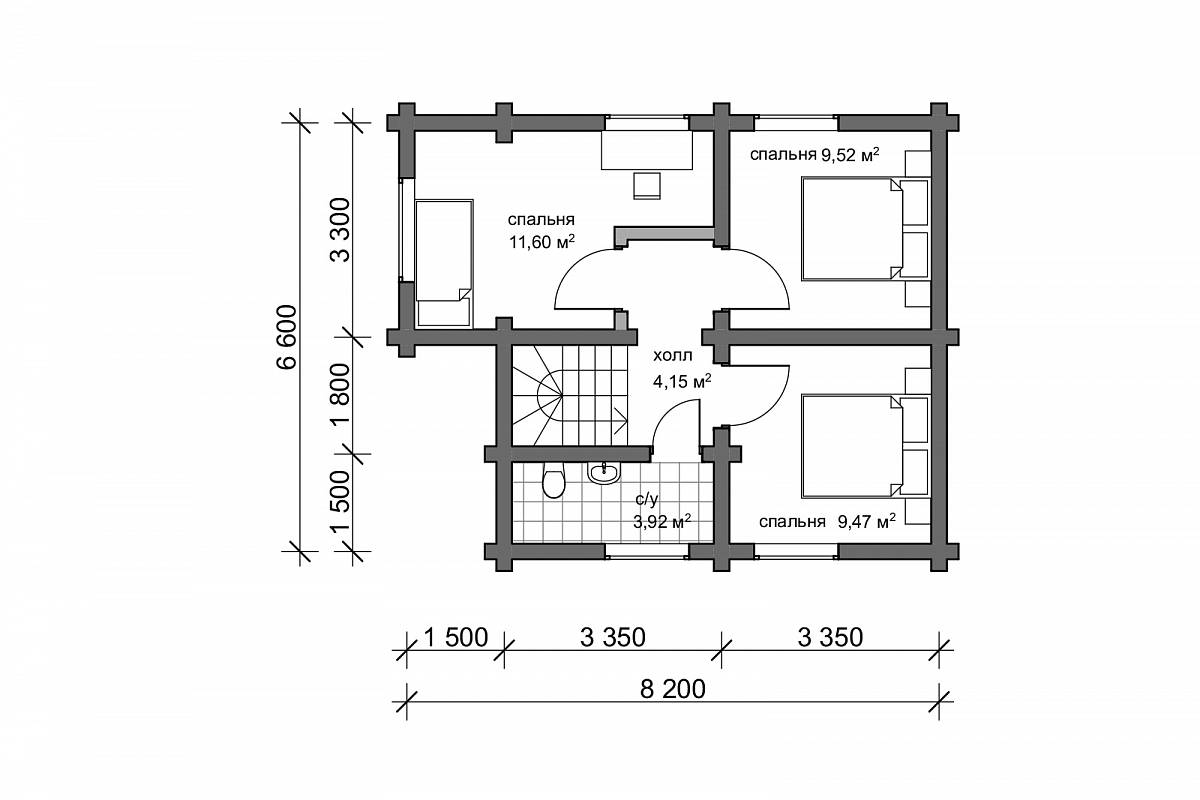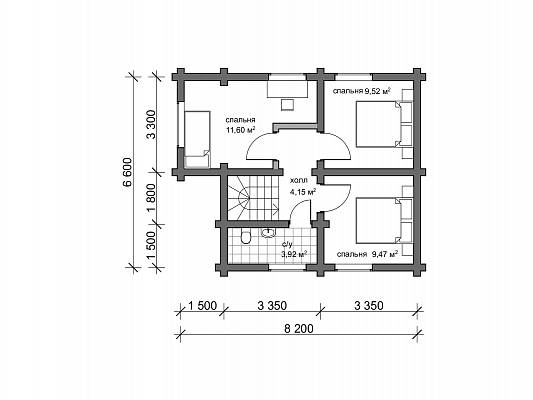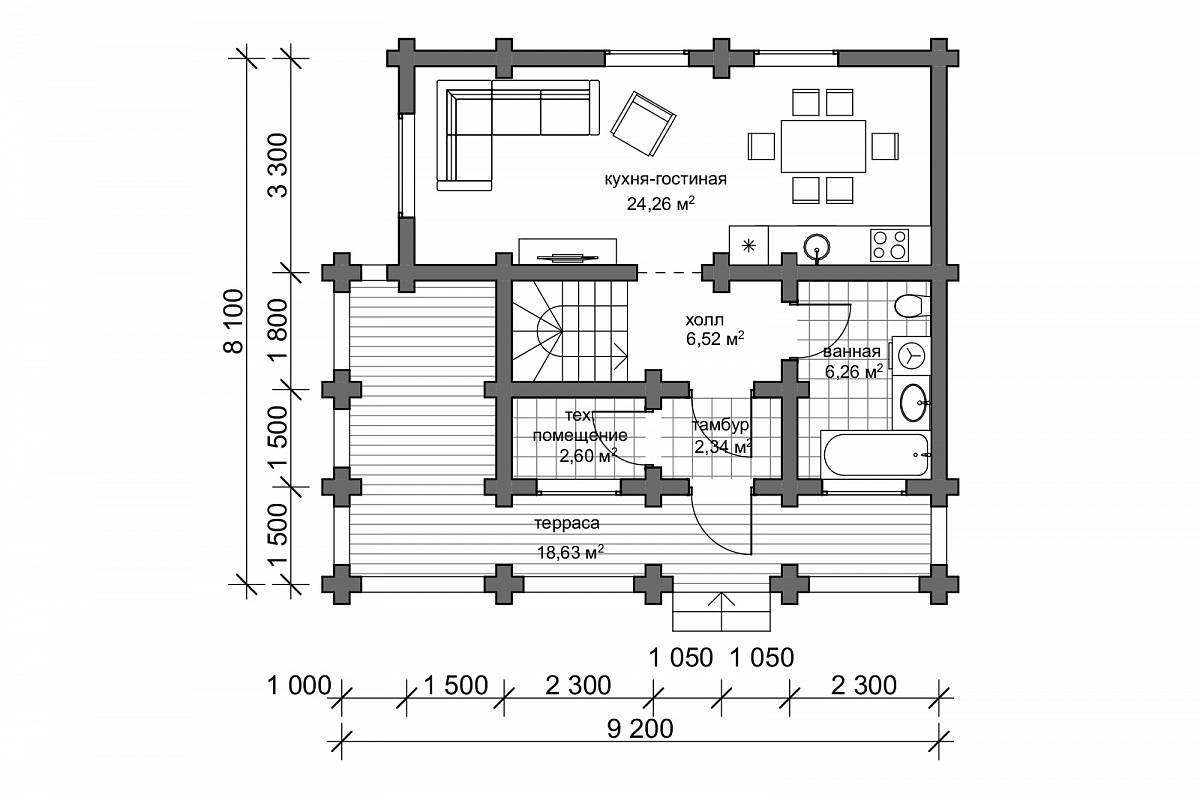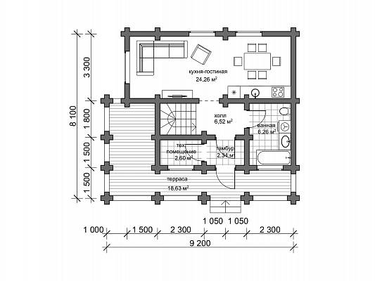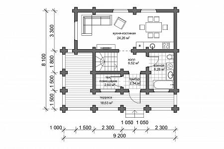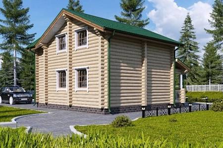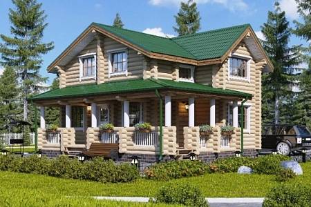 Проект деревянного дома выполнен в русском стиле. Пригоден для постоянного проживания, т.к. для материала стен используется достаточное по диаметру 22 см бревно. Подойдет для семьи из 4-5 человек.