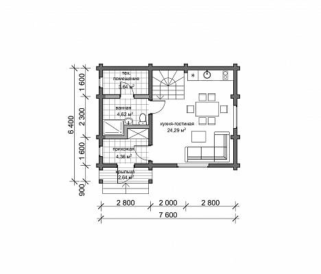 Классический проект дачного дома. Подойдет для участков от 6 соток, как для постоянного проживания, так и сезонного.