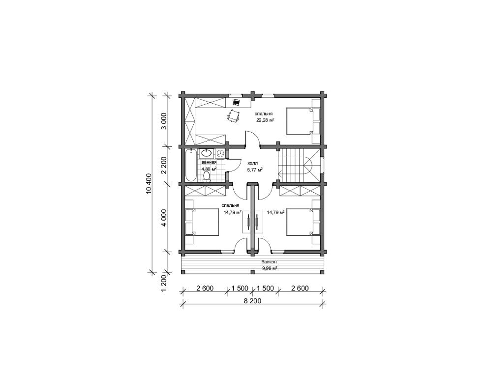 Второй этаж мансардный, здесь расположены три просторных спальных комнаты, в каждой из которых разместиться двуспальная кровать, плательный шкаф, письменный стол и еще останется место для размещения мебели относительно хобби хозяев. По южному фасаду спроектирован балкон на консольных вылетах, это дополнительное место для отдыха в летнее время года.