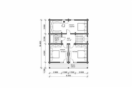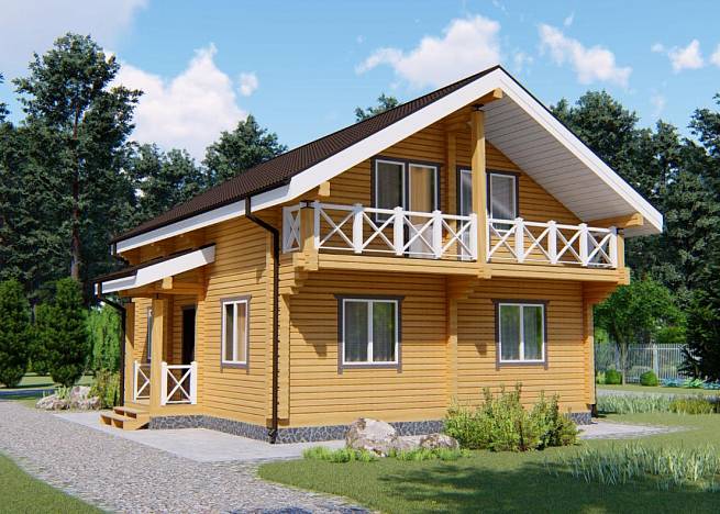 Классический проект деревянного дома для постоянного проживания. Дом подойдет семье из 4-5 человек.