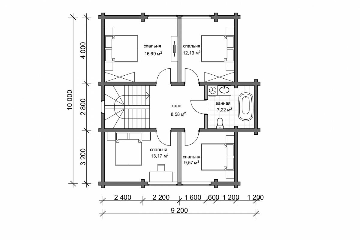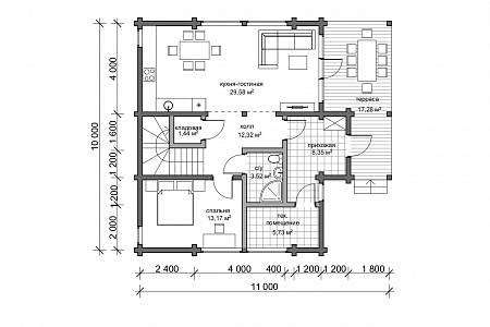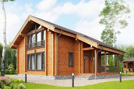 Классический проект деревянного дома из клееного бруса с двускатной кровлей. При компактных габаритах 9,9х10,9 дом имеет все необходимые помещения для комфортного проживания.