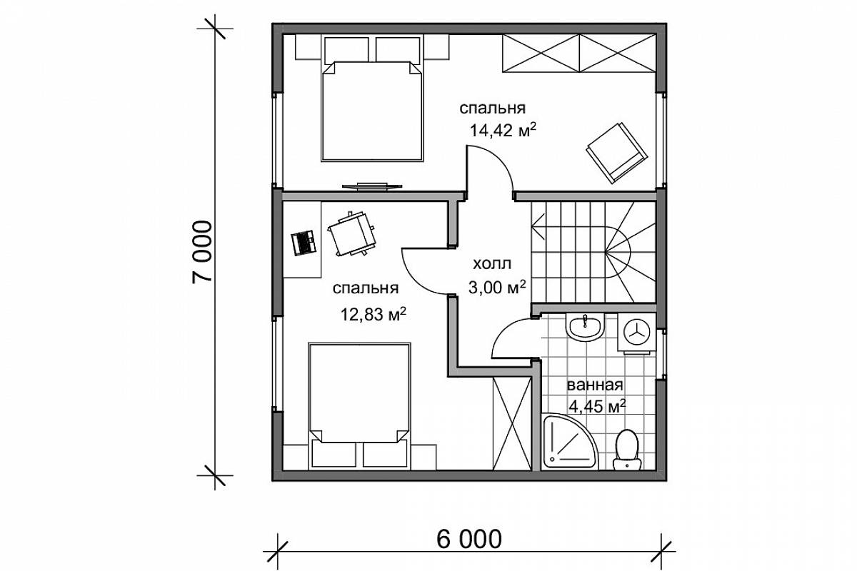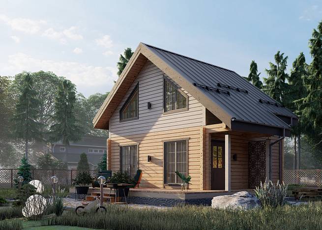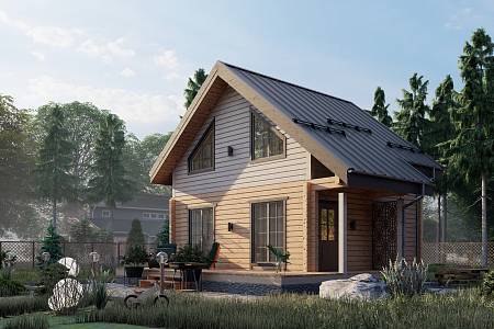 Компактный, уютный и функциональный двухэтажный загородный коттедж в 77 квадратов.