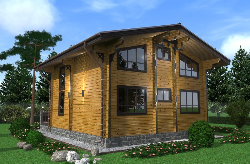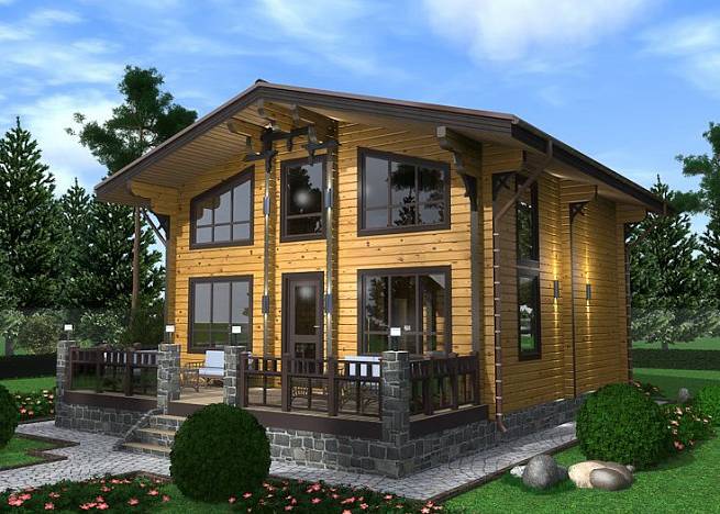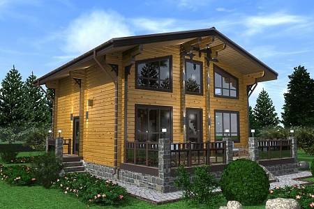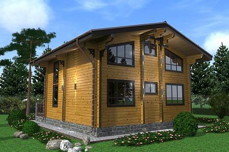 Проект деревянного дома выполнен в скандинавском стиле, для него характерны: мансардная кровля с небольшим уклоном и широкими свесами, большая площадь остекления, открытые террасы. Данный проект подойдет для постоянного проживания семьи из 3-4 человек.
