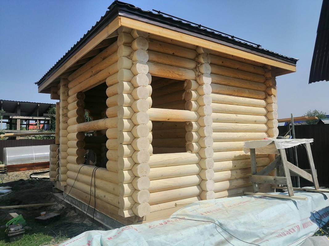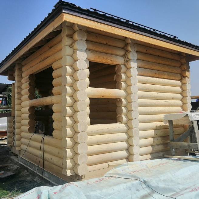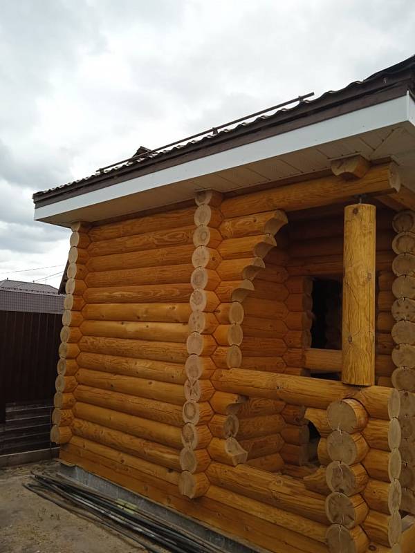 Материал стен: Изделия из оцилиндрованного бревна естественной влажности диам. 220 мм (сосна) до 6000 мм