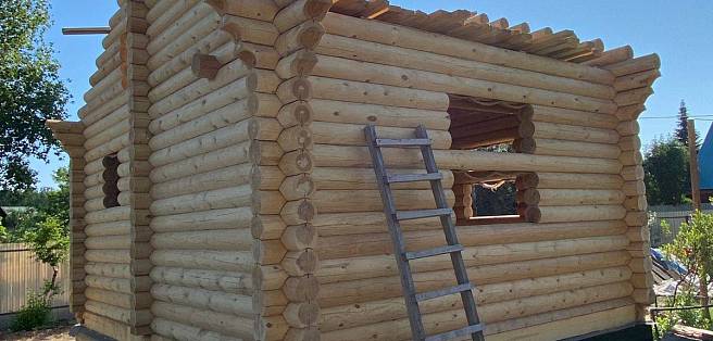 Материал стен: Изделия из оцилиндрованного бревна естественной влажности диам. 200 мм (сосна) до 6000 мм