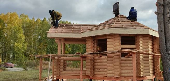 Нами была построена чудесная беседка из оцилиндрованного бревна! Ведь никакой материал не сравнится по красоте и экологичности с настоящим деревом! Приятное время препровождение нашим заказчикам обеспечено! А впереди еще баня и дом!