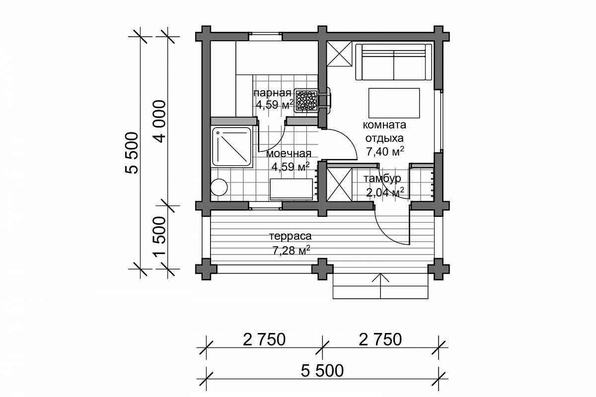 Преимущества: Красивая терраса Много места в моечной Тамбур для лучшего сохранения тепла и размещения верхней одежды