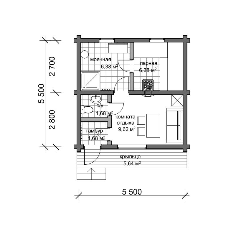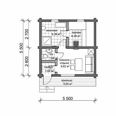 Проект бани из бруса «Фиалка»