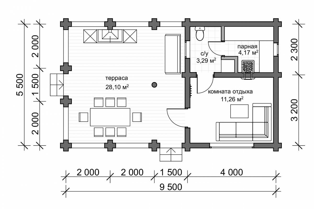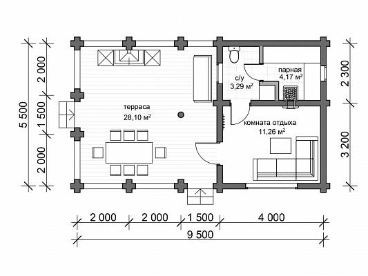Проект бани из бревна "Горьковка"