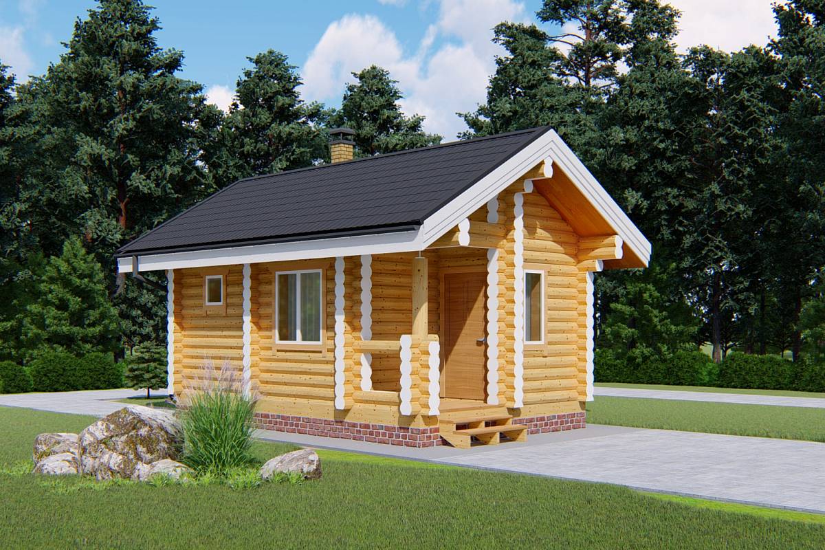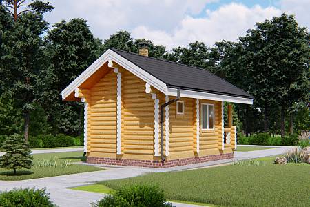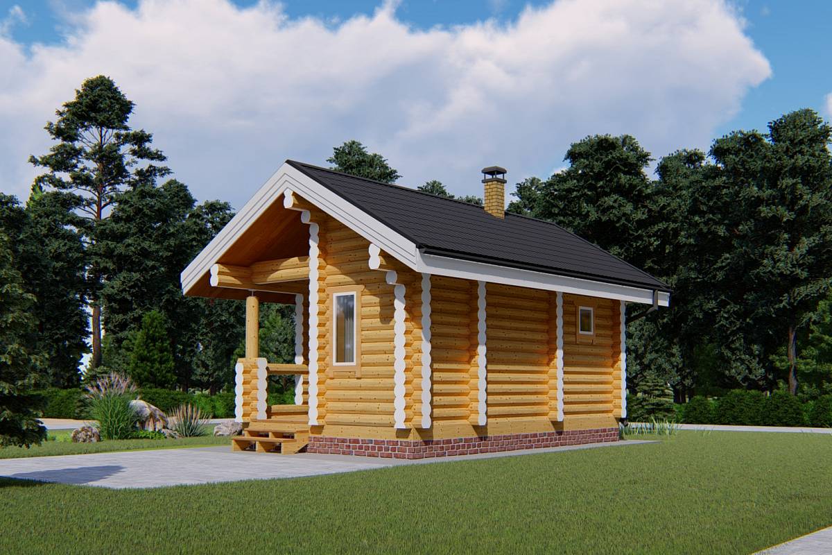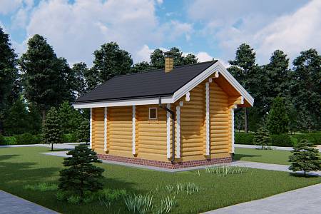 Проект бани «Ингал» из оцилиндрованного бревна 22 см общей площадью 22 квадратных метров и габаритами 4х6 метров. Такая баня подойдет для небольшого садового или загородного участка. Баня «Ингал» для тех, кто любит банный отдых, но не располагает большой территорией для строительства бани.