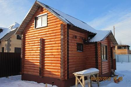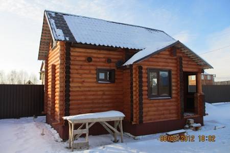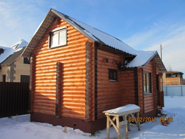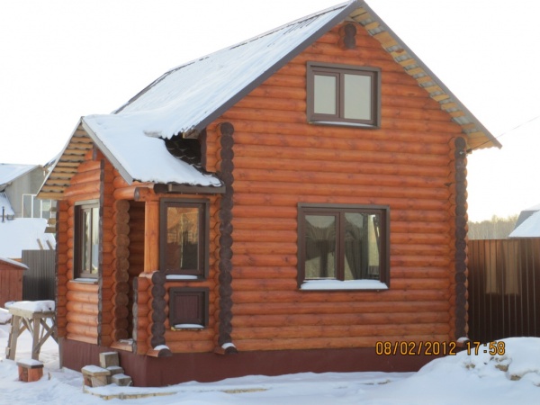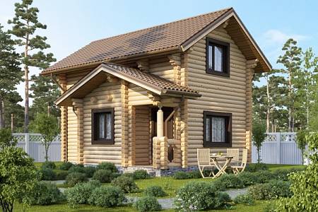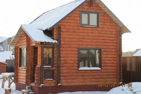 Проект двухэтажной бани, выполнен из оцилиндрованного бревна, помимо основной функции может использоваться в качестве дачного дома или гостевого домика.