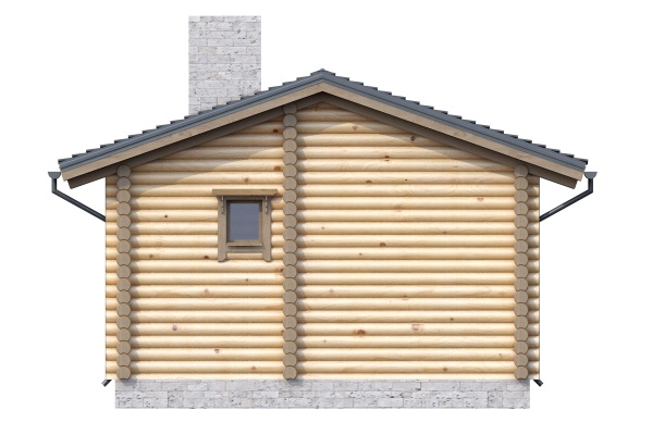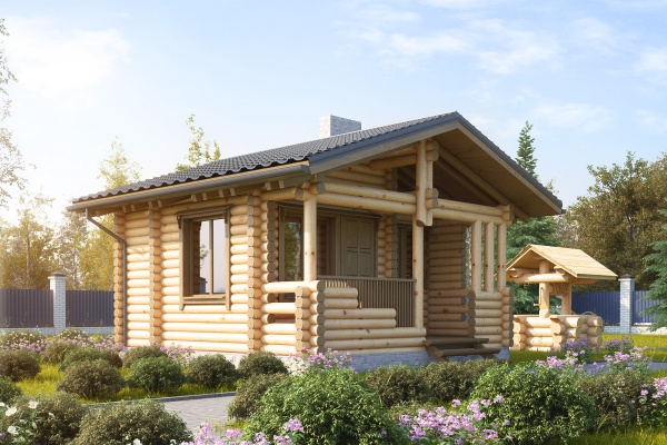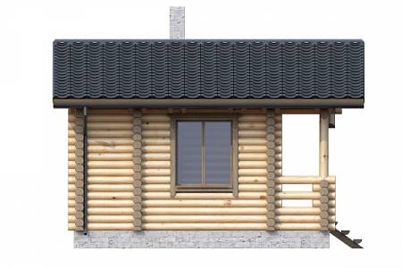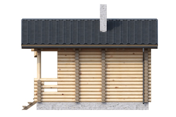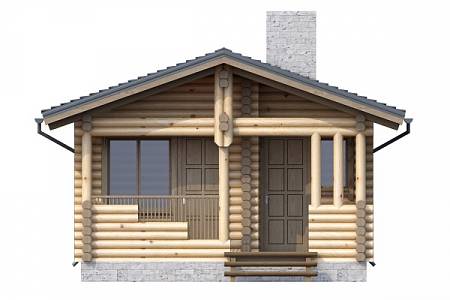 Проект бани, небольшой по размерам со всеми необходимыми помещениями для комфортного отдыха и парения. Баня выполнена из оцилиндрованного бревна, крыша двускатная, лицевой фасад украшен крыльцом с перерубами и вертикальными стойками.