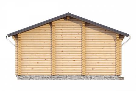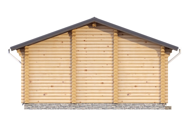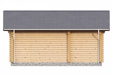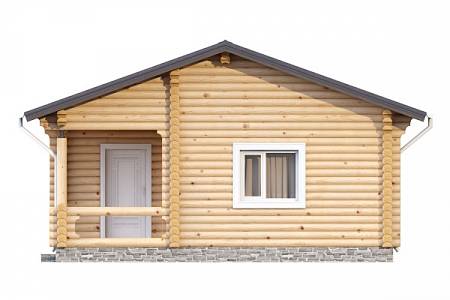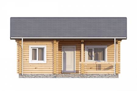 Проект деревянной бани, выполнен из оцилиндрованного бревна. Подойдет для размещения на садовых и дачных участках. Баню украшает терраса с перерубами и вертикальными стойками.