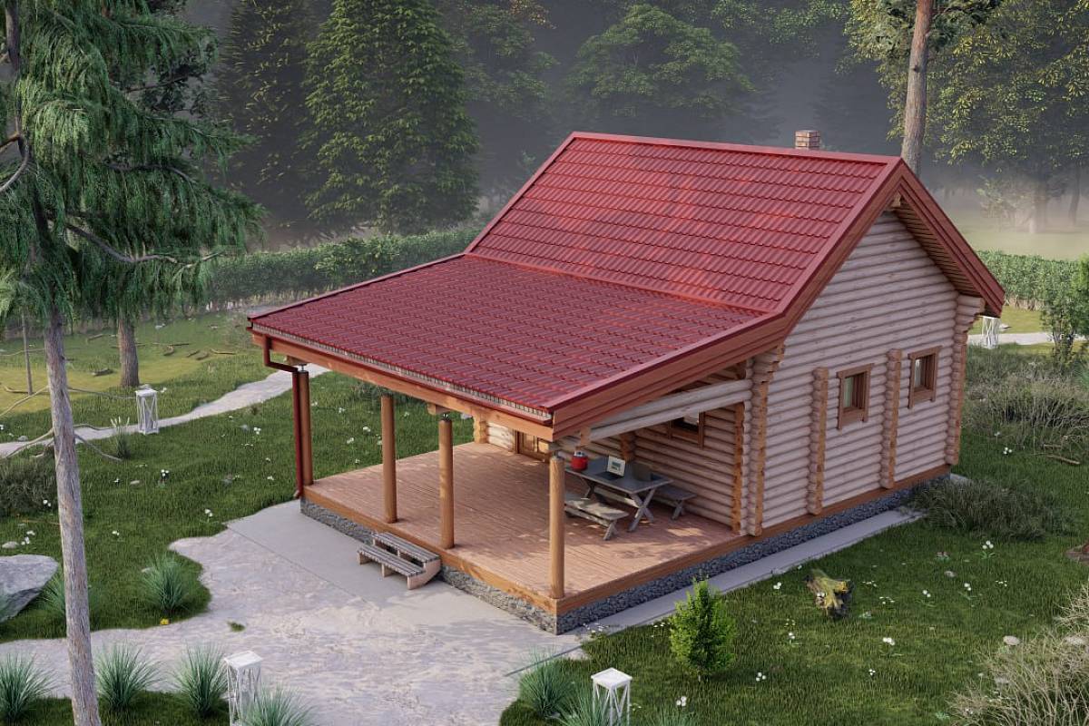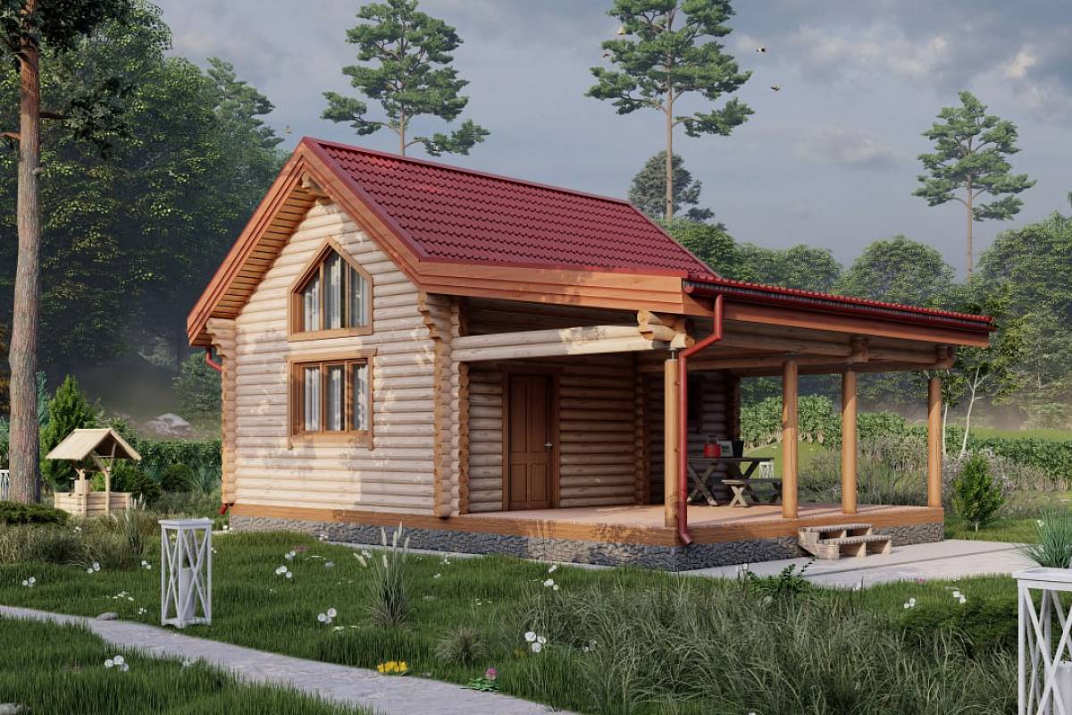 Проект бани из бревна "Волчиха"