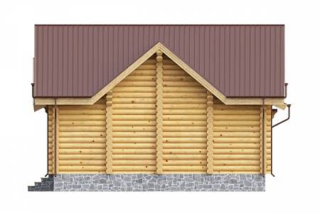 Банный комплекс выполнен из оцилиндрованного бревна, имеет общие размеры 7,5х12,0 м. У бани выполнен расширенный состав помещений для комфортного парения и отдыха. Кровля над баней выполнена в несколько ярусов, что придает ей необычный и запоминающийся облик.