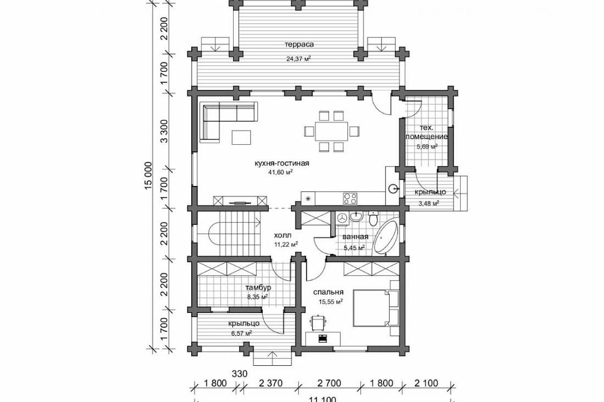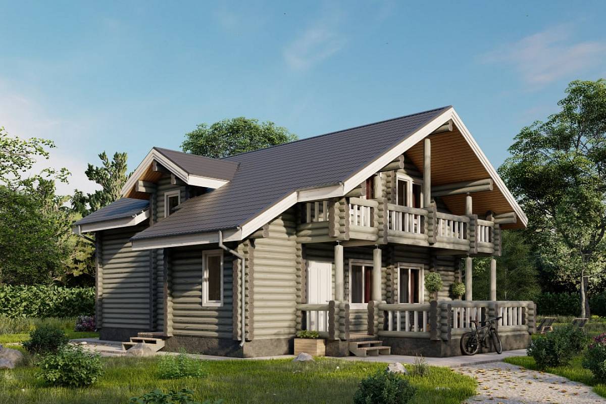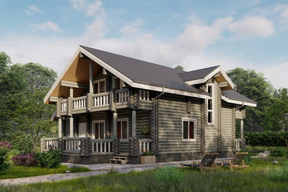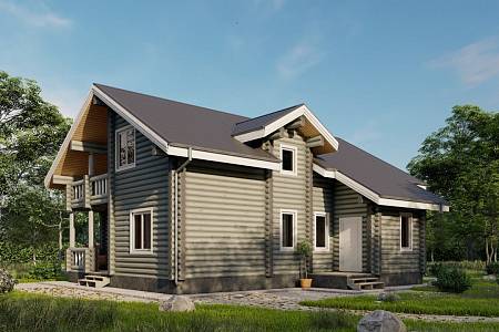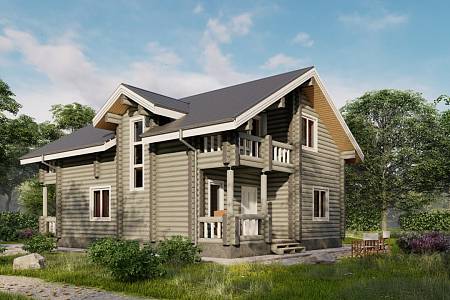 Проект деревянного дома, спроектирован для постоянного проживания семьи из 4-5 человек. Дом имеет классический вид с мансардным вторым этажом и двускатной кровлей с кукушками по боковым фасадам.