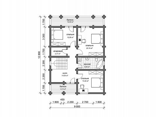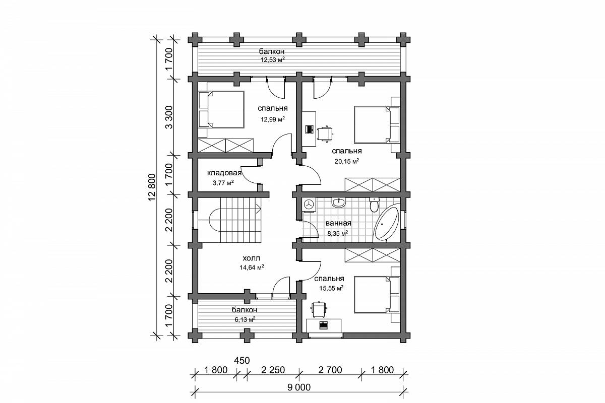 На втором этаже запроектированы три просторных спальни, санузел, кладовая, есть выход на крытый балкон. Общее пространство холла станет дополнительным местом для отдыха всей семьи.