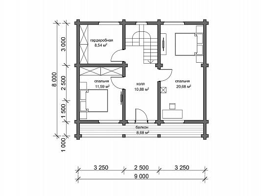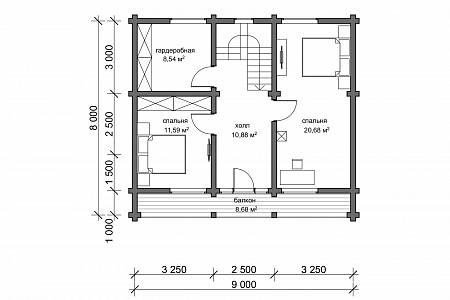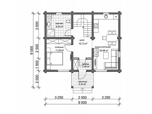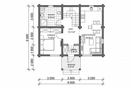 Компактный проект дачного дома, с габаритами 9,0х9,0 м, разместится на участке от 6 соток. Дом имеет классическую архитектуру – двускатную кровлю, второй мансардный этаж.