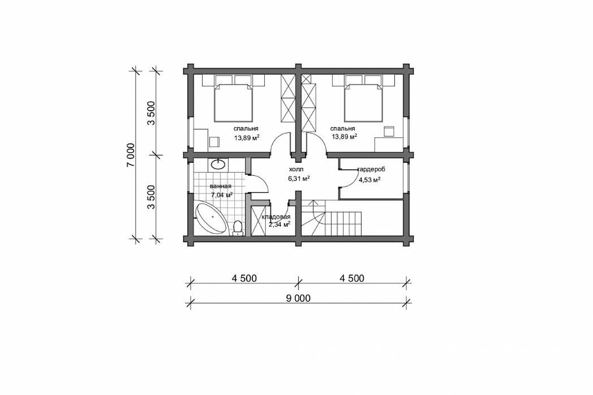 Второй этаж мансардный с утепленной кровлей. Здесь размещаются две спальни, помещение гардероба и санузла.