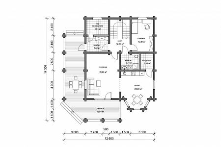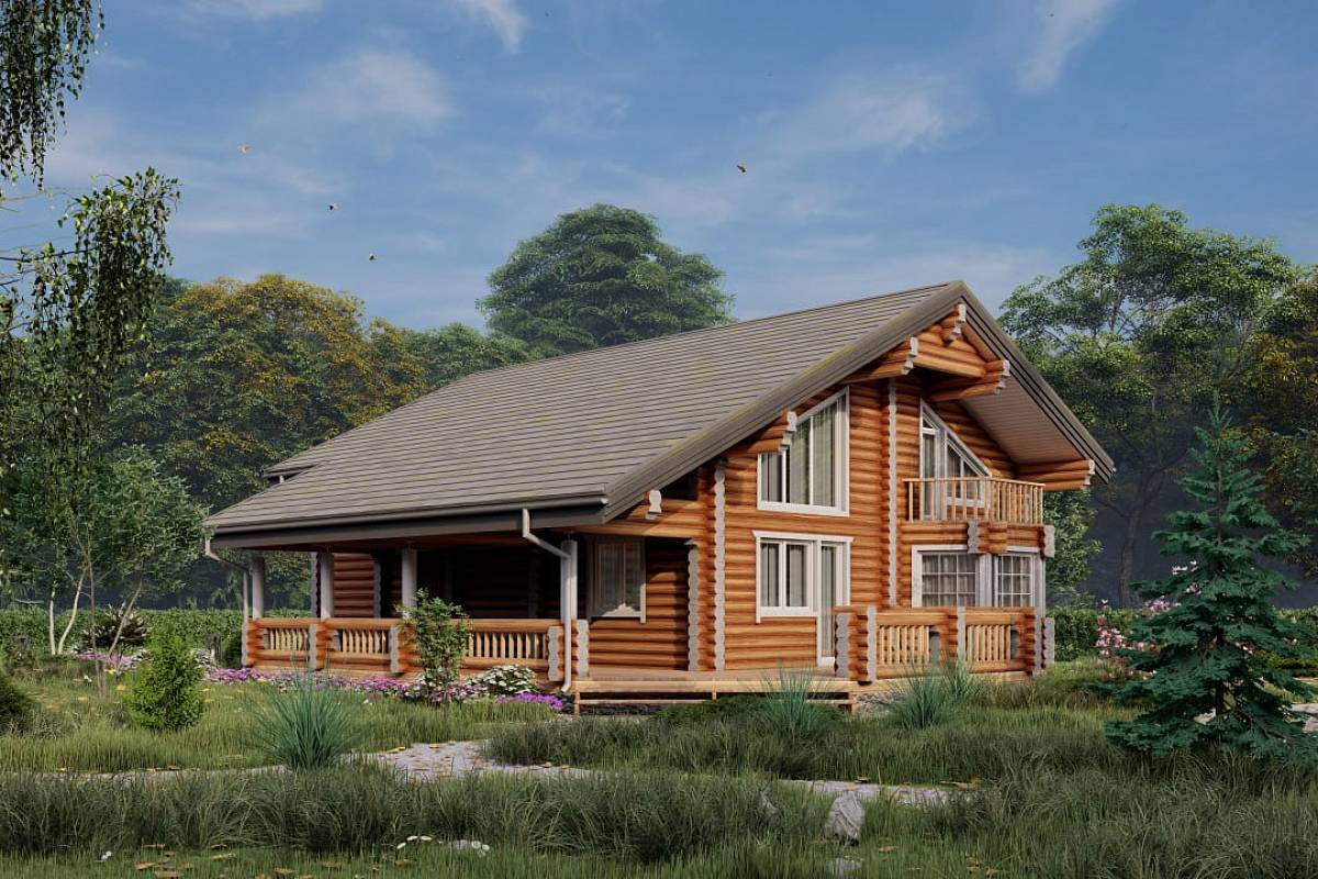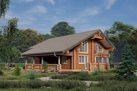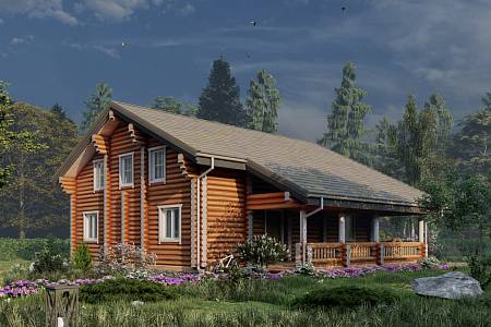 Проект дома 217 м.кв. подойдет как для постоянного проживания, так и в виде дома выходного дня. Классический вид фасадов с двускатной кровлей украшает эркер и терраса, состоящая из двух частей – под кровлей и открытая.