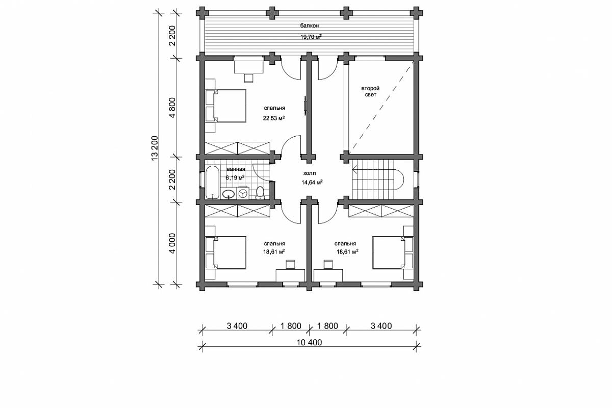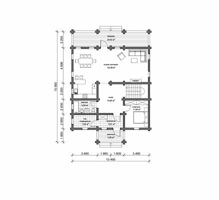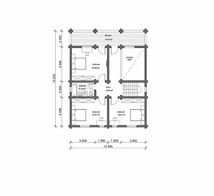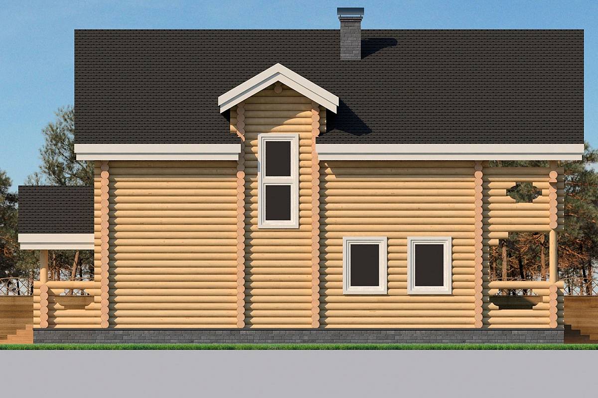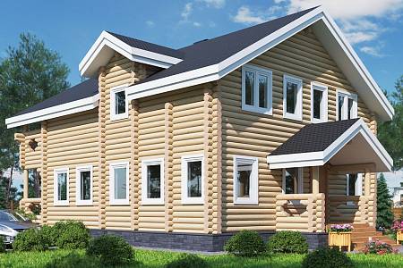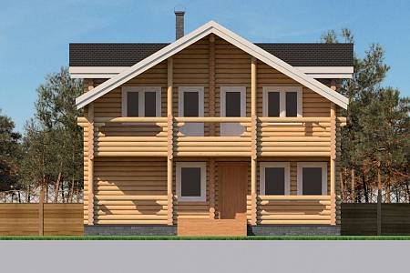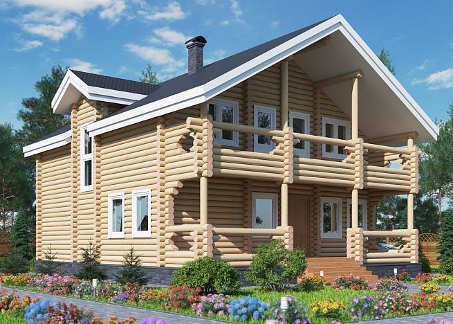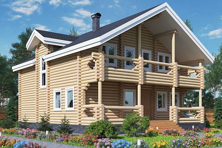 Просторный двухэтажный дом с террасой, четырьмя спальнями, балконом и обширной гостиной со вторым светом. Дом имеет общую площадь 229 м.кв. и подойдет для постоянного проживания. Проект дома имеет классический внешний вид – двускатная кровля, по южному фасаду расположились терраса с балконом, консольные выступы из бревна держат широкие свесы крыши.