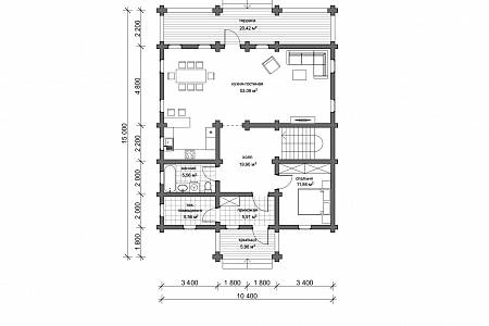 Для комфортного проживания предусмотрены все необходимые помещения. Для защиты от бокового ветра и осадков при входе в дом запроектировано крыльцо. Далее через тепловой тамбур попадаем в холл, из которого можно подняться на второй этаж, зайти в санузел, жилую комнату и в кухню-гостиную. Здесь достаточно места для размещения кухонного гарнитура, обеденной зоны и диванной группы. Из кухни есть выход на террасу, которая в летний период станет дополнительным местом для отдыха всей семье. На втором этаже разместились три спальни, санузел, балкон.