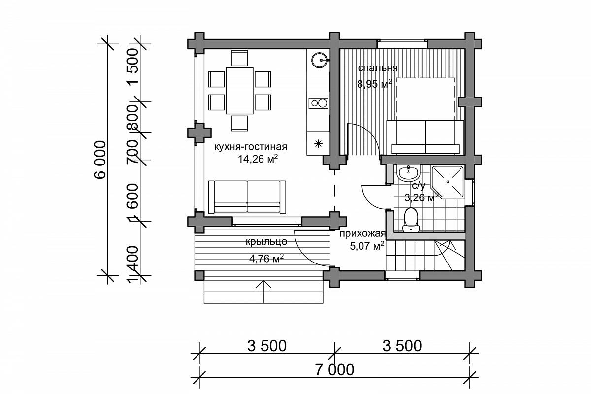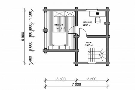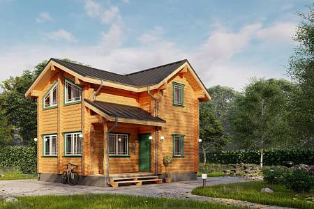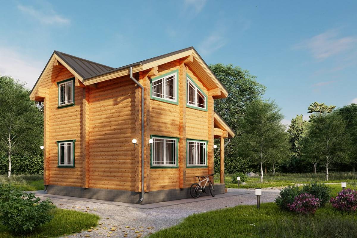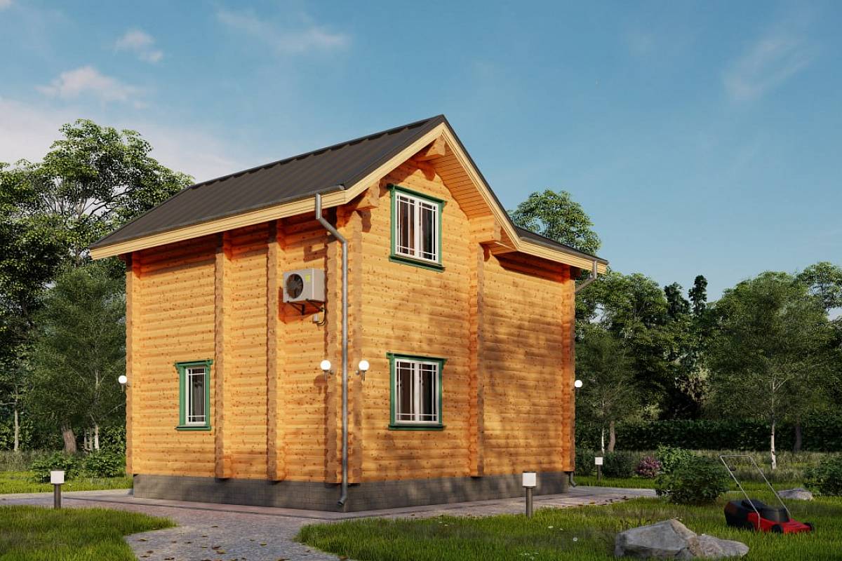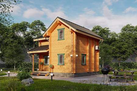 Проект дома с габаритами 6,6х7,6 подойдет для небольших участков от 4 соток, для постоянного или сезонного проживания. Проект выполнен из оцилиндрованного бревна 24 диаметра, стены хорошо сохранят тепло, порадуют приятной текстурой и рисунком дерева.
