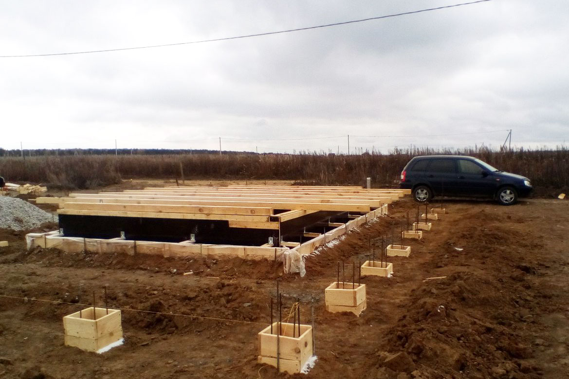 На песчаных грунтах для небольших построек выполняют незаглубленные или малозаглубленные основания. Вместо столбов можно использовать трубы, тогда опорная часть напоминает свайный фундамент. На пучинистых водонасыщенных грунтах возводят заглубленный в почву свайно-ростверковый фундамент в несколько этапов: